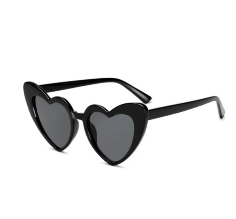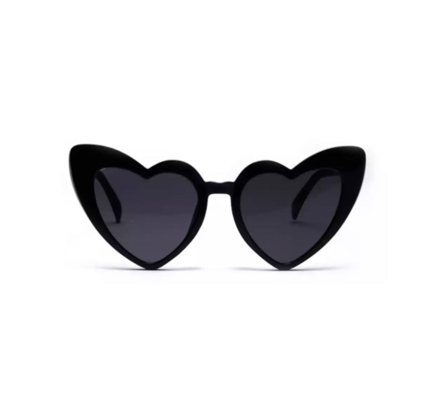 Heart Shaped Oversized Sunglasses. Comes with a Microfiber pouch case and a cleaning cloth. Two colors available.